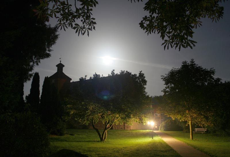 Es ist schon ein wenig gespenstisch wenn man sich bei Vollmond und kurz vor Mitternacht an der Kirche aufhält, doch nur so sind solche einmaligen Aufnahmen möglich.