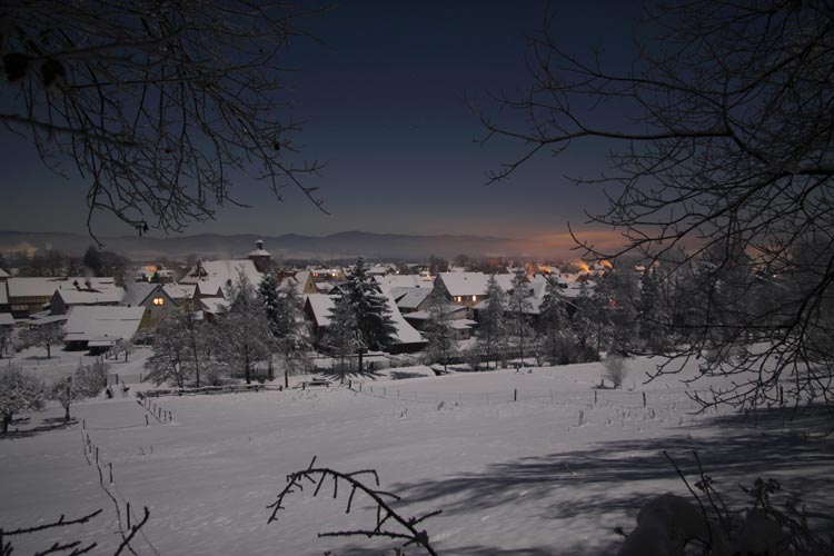 Blick vom Rotenberg auf das Unterdorf in einer klaren Vollmondnacht bei - 16°C !