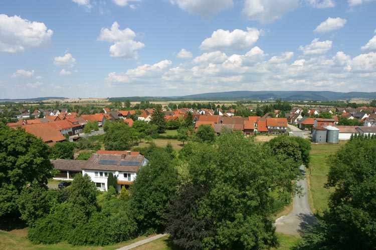 " Blick vom Kirchturm auf das Pfarrhaus und die Pfalzstraße" Aufnahme August 2007