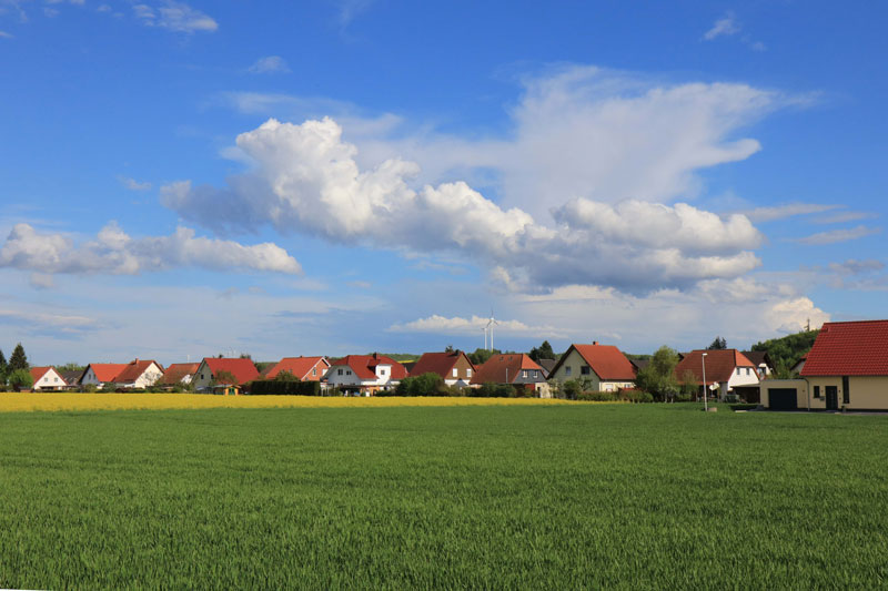 Blick vom "Pulverhof" auf Pöhlde, im Hintergrund die Windmühlen am "Hulen Weg"