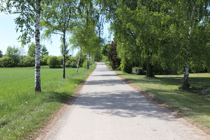 "Nesselrode" - eine Birkenallee" im Hintergund der Radfahrweg von Pöhlde nach Herzberg
