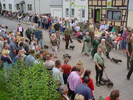 Fußgruppe mit Erhard Fietz und Freunden in Begleitung von lauter Dackeln aus dem Teckel-Club